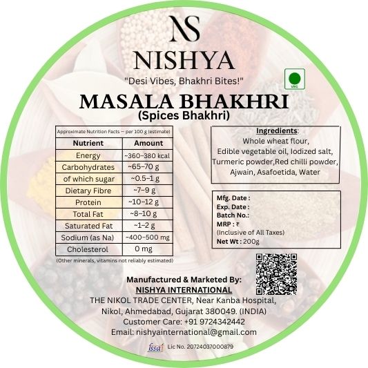 Masala Bhakhri is a crunchy traditional snack made from whole wheat flour blended with aromatic Indian spices. Rich in fiber and full of bold desi flavors, it supports digestion and provides wholesome, long-lasting energy for everyday snacking.
