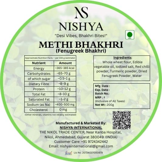Methi Bhakhri is a crunchy traditional snack made from whole wheat flour, fenugreek, and mild spices. Rich in fiber, it supports digestion, helps balance blood sugar, and provides wholesome energy with authentic desi flavor.