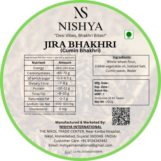 Jira Bhakhri is a crunchy traditional snack made from whole wheat flour and cumin seeds, offering a mild, aromatic flavor. Rich in fiber, it aids digestion, supports gut health, and provides wholesome, long-lasting energy with a classic desi taste.